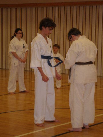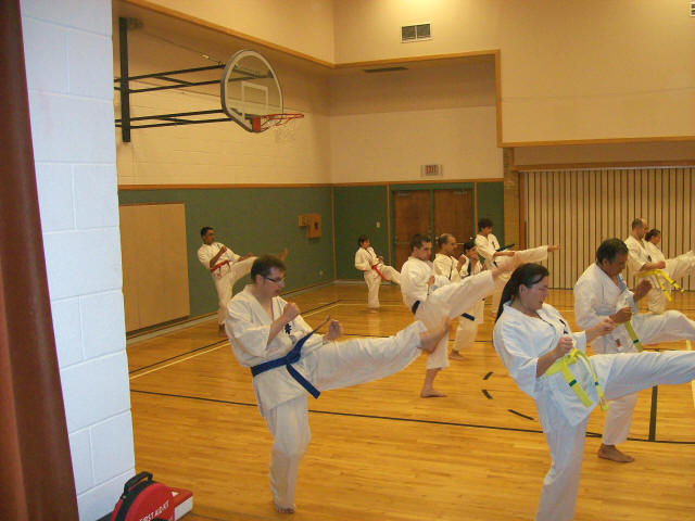| Testing on Kihon Geiko (Keri Wasa): Left to right: Mandeep, Jacob, Christopher, Alan, Mr. Ya, Li, Je, Ms. Neil, Mr. Avalos, Remi, Daria. |