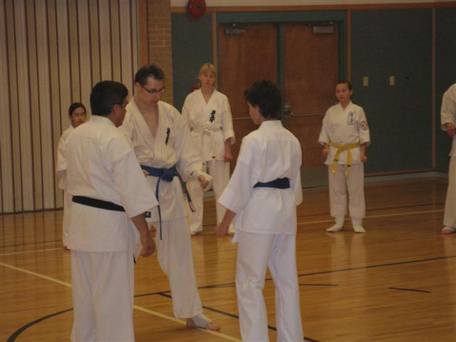 | Christopher and Je, during Kumite. In the back: Li, Laura, Daria | |||||