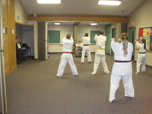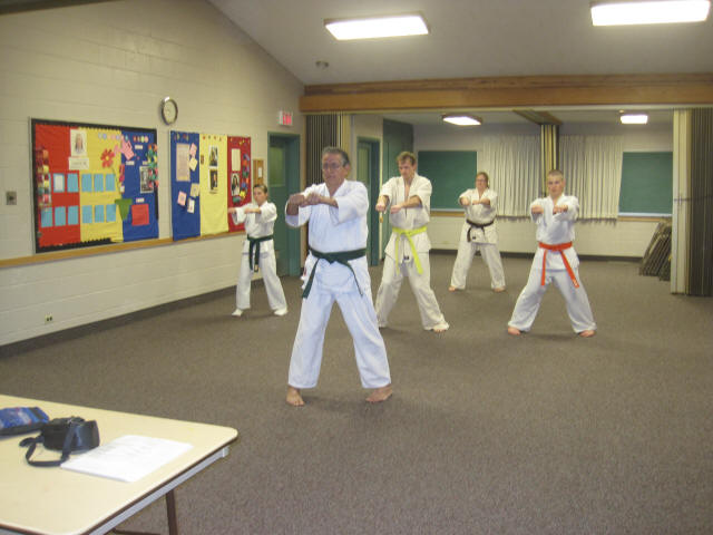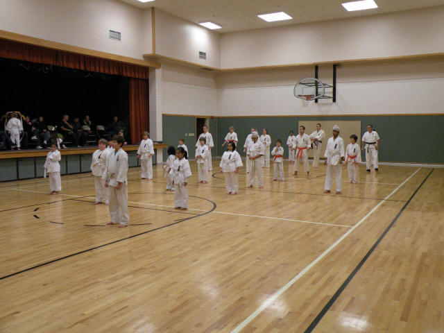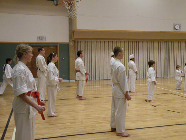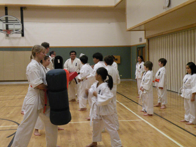 | Sensei instructing the students about the sparring part of the testing | |||||||||||||||||