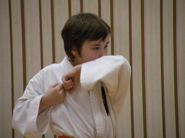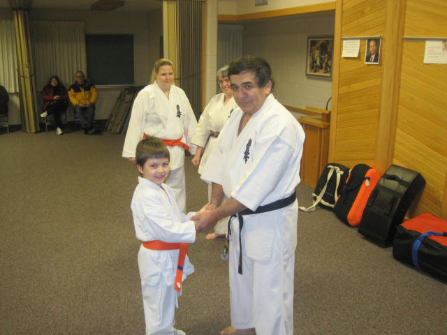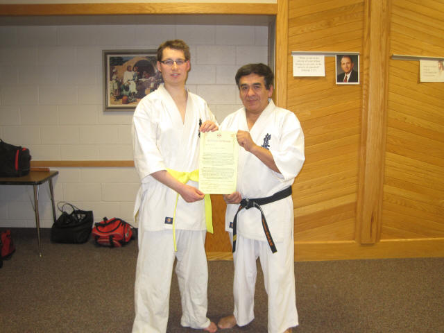 | Chris getting his Yellow Belt certificate by Sensei | |||||||||||||||||
